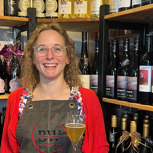 Weinberatung & Schnäpschen-Glücksfee – verteilt gute Laune in flüssiger Form.